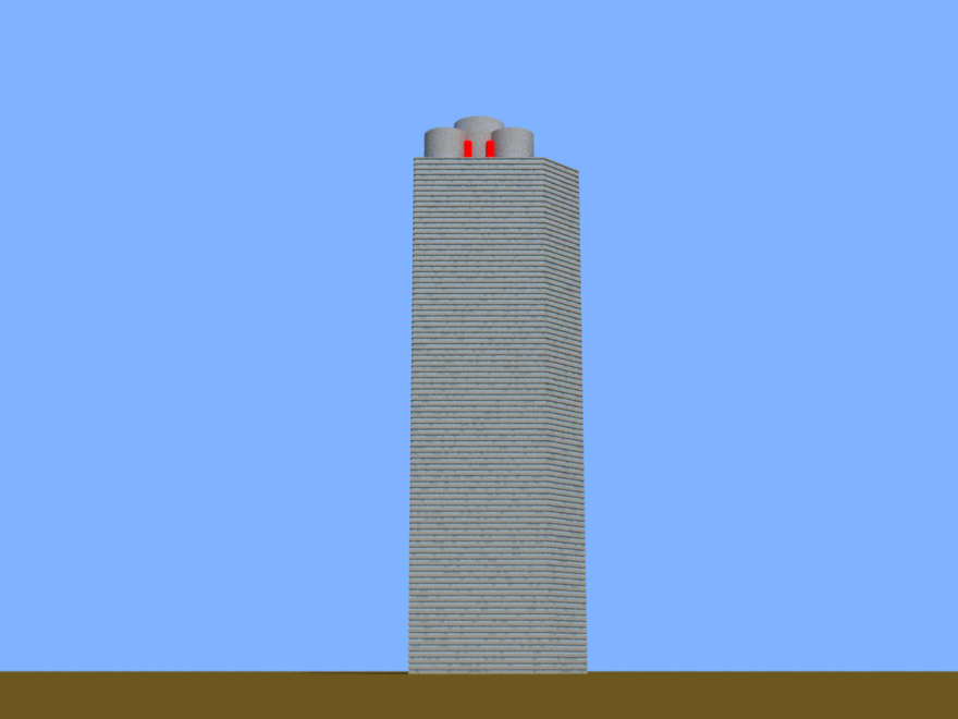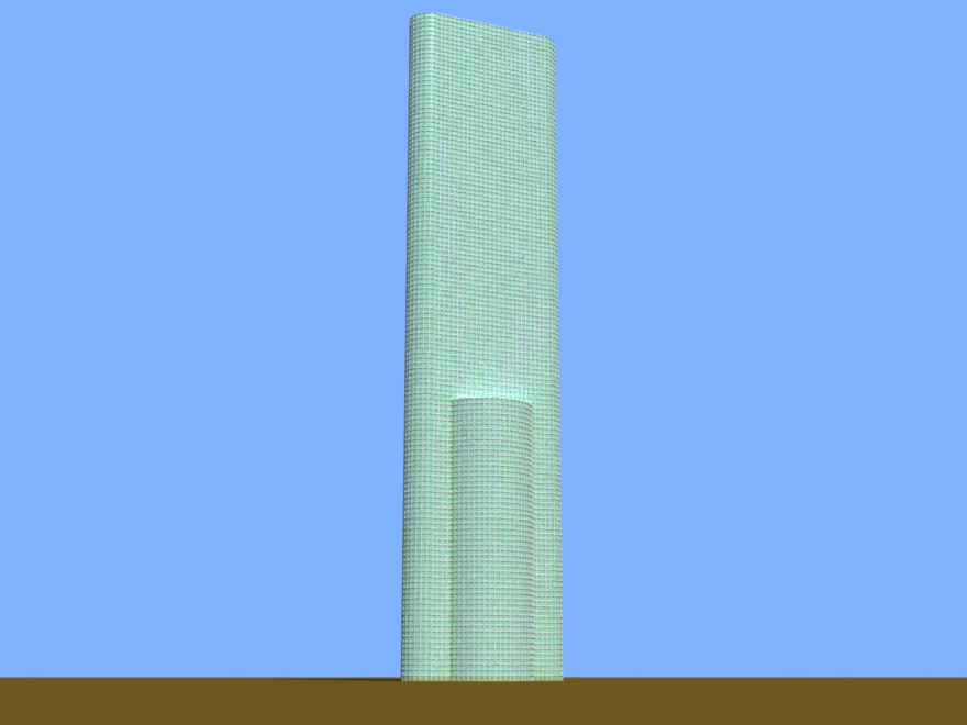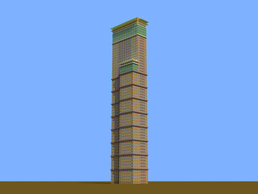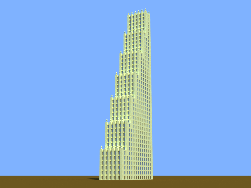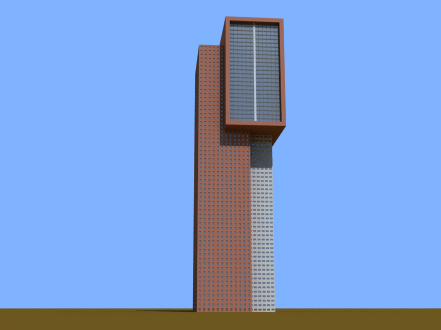 A building with an offset section on the top loosely based on Montevideo tower in Rotterdam.