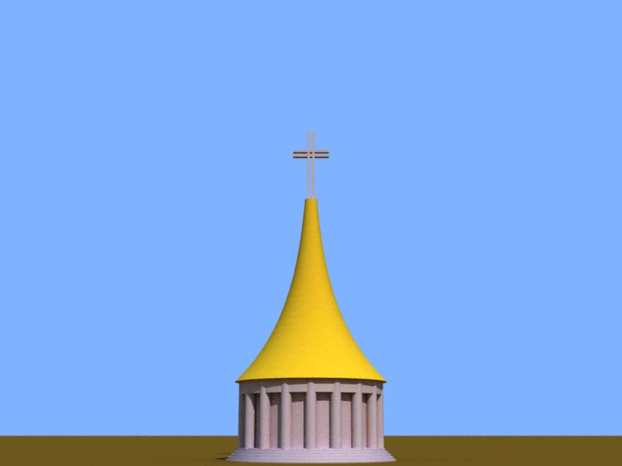 A round church type building. Cross removable.