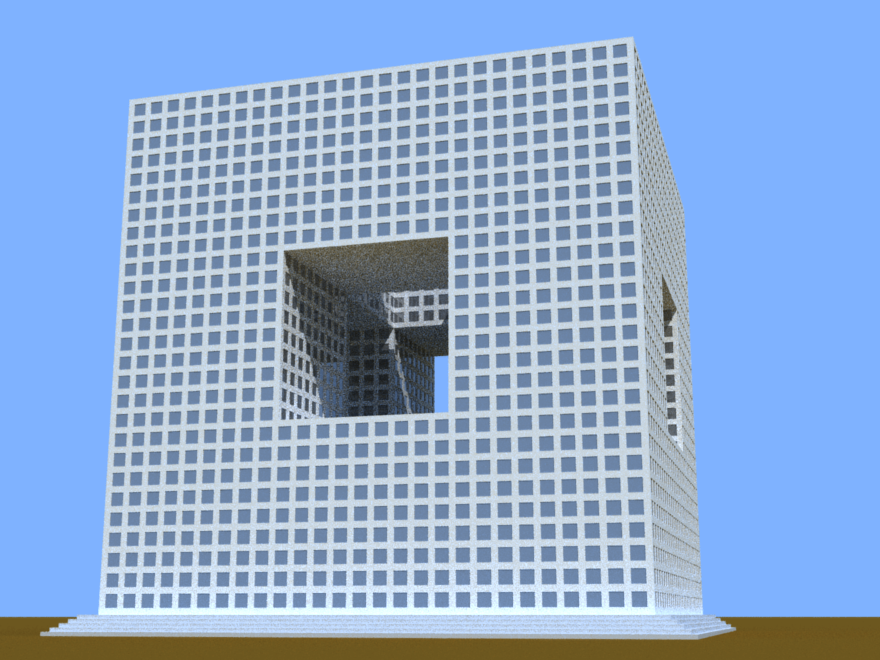 A punctured cube building with optional base.