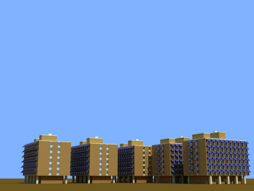 desert towers, a former complex of dorms at BYU. Number and arrangement of buildings easily changed.