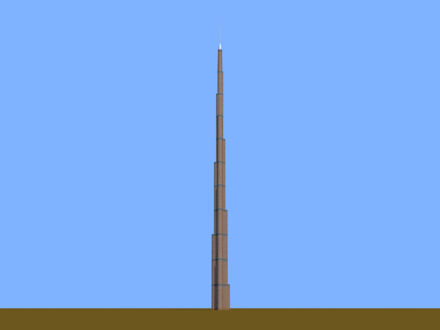 A tall building based loosely on Burj Khalifa.