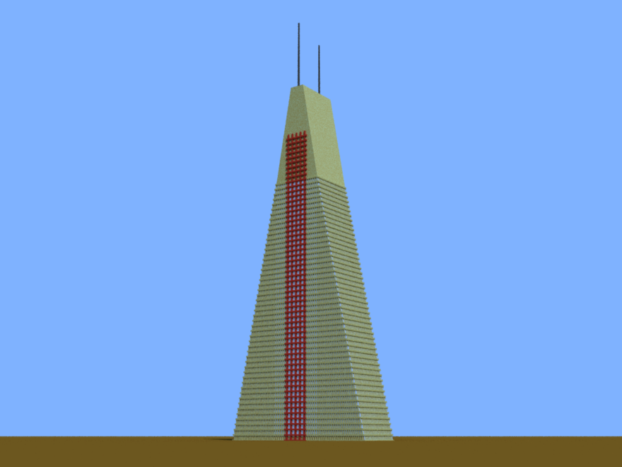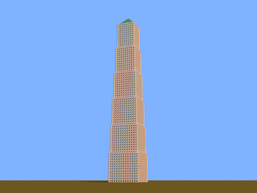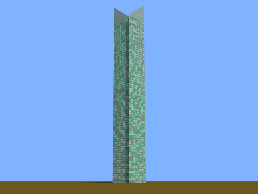 A building with a slashed top, inspired by one in Chicago.