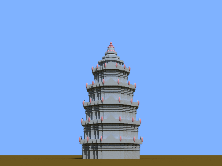 An Angkor Wat style tower at low resolution,