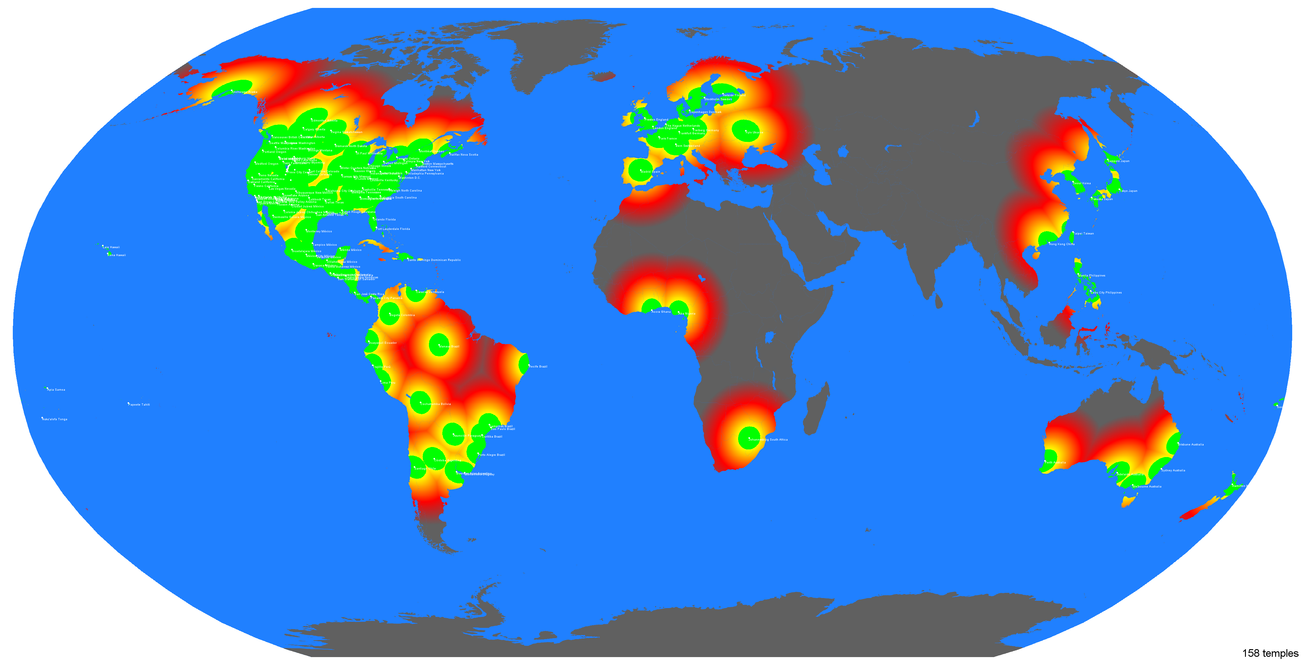 the distance to the closest temple by