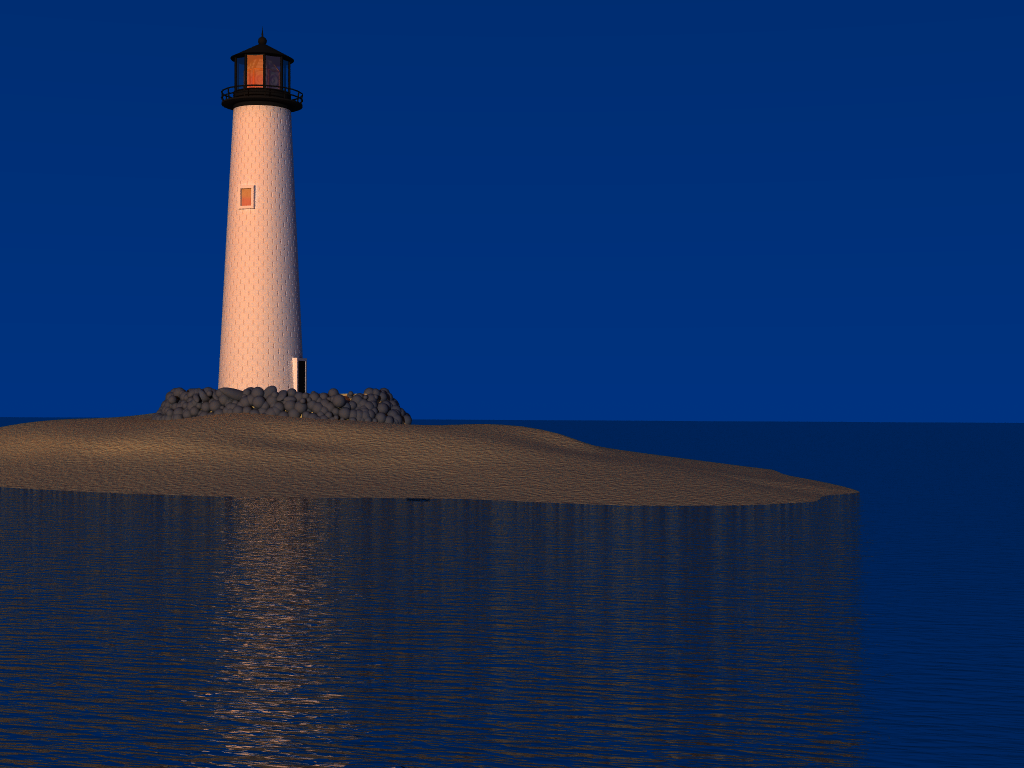Sandbar Light (April 2007) During my lighthouse phase, I am particularly proud of the reflection in the glass at the top of the tower. This is an early work, and I really feel that it could actually exitst, as if it is a picture copied from life, as opposed to entirely a creation of my imagination. The carefull observer will note the location is on the east coast.